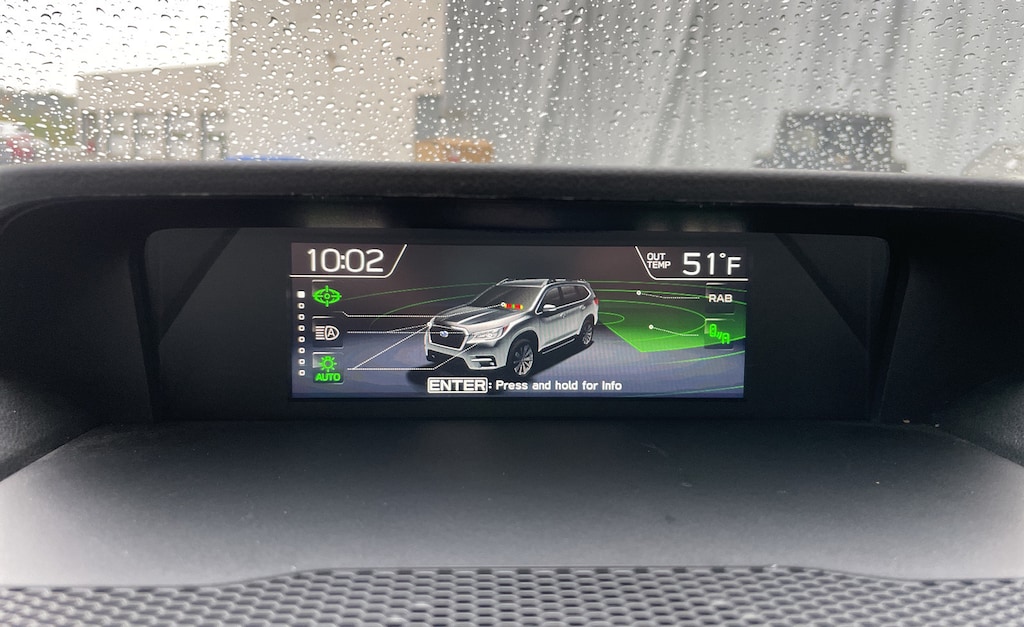 - Lane departure: EyeSight Lane Keep Assist active