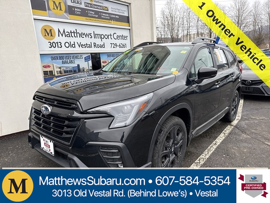 Matthews Import Center promises each customer a thorough and confident 120-point inspection on our used inventory guaranteeing a relaxing and peace-of-mind experience. We are located behind Lowes in Vestal NY. Or call us at (607) 729 - 6261Matthews Import Center3013 Old Vestal RoadVestal NY 13850. Certified. Crystal Black Silica 2024 Subaru Onyx Edition Ascent AWD Lineartronic CVT 2.4L 4-Cylinder DOHC 16VOdometer is 23710 miles below market average!Subaru Certified Pre-Owned Details: * Transferable Warranty * Roadside Assistance * SiriusXM 3-Month trial subscription $500 Owner Loyalty coupon & 1 year trial subscription to STARLINK * 152 Point Inspection * Warranty Deductible: $0 * Vehicle History * Powertrain Limited Warranty: 84 Month/100000 Mile (whichever comes first) from original in-service date