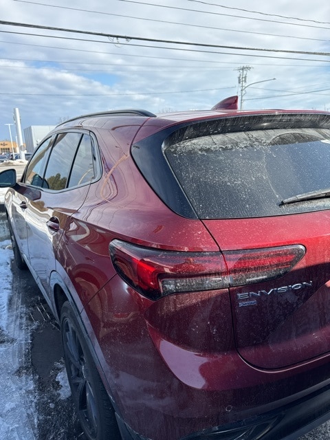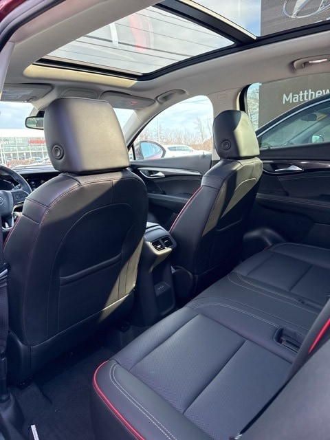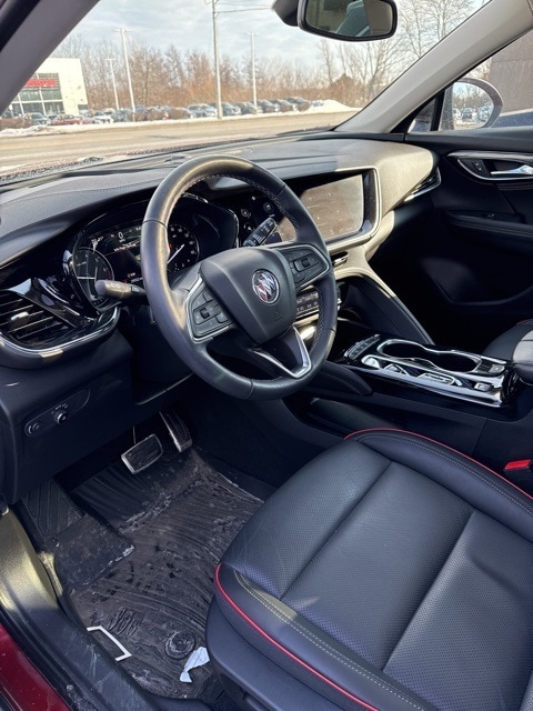 Cinnabar Metallic 2023 Buick Envision Essence AWD 9-Speed Automatic 2.0L Turbocharged 3.47 Final Drive Axle Ratio, 4-Wheel Disc Brakes, 7 Speakers, 7-Speaker Audio System Feature w/Amplifier, 8-Way Power Driver Seat Adjuster, ABS brakes, Air Conditioning, Alloy wheels, AM/FM radio: SiriusXM, Apple CarPlay/Android Auto, Auto High-beam Headlights, Auto-dimming door mirrors, Auto-dimming Rear-View mirror, Automatic Emergency Braking, Automatic temperature control, Black Roof Rails, Body-Color Door Handles, Brake assist, Bumpers: body-color, Carpeted Front & Rear Floor Mats, Compass, Delay-off headlights, Driver door bin, Driver vanity mirror, Dual front impact airbags, Dual front side impact airbags, Electronic Stability Control, Emergency communication system: OnStar and Buick connected services capable, Envision Driver Confidence, Following Distance Indicator, Forward Collision Alert, Four wheel independent suspension, Front anti-roll bar, Front Bin Center Console USB Ports, Front Bucket Seats, Front Center Armrest, Front dual zone A/C, Front Passenger 8-Way Power Seat Adjuster, Front Pedestrian Braking, Front reading lights, Fully automatic headlights, Heated door mirrors, Heated Driver & Front Passenger Seats, Heated front seats, Heated steering wheel, Illuminated entry, IntelliBeam Headlamp Control w/Auto High Beam, Knee airbag, Lane Change Alert w/Side Blind Zone Alert, Lane Keep Assist w/Lane Departure Warning, Low tire pressure warning, Lower Trim/Wheel Arch Moldings, Memory seat, Occupant sensing airbag, Outside temperature display, Overhead airbag, Overhead console, Panic alarm, Passenger door bin, Passenger vanity mirror, Perforated Leather-Appointed Seat Trim, Power door mirrors, Power driver seat, Power Liftgate, Power Panoramic Tilt-Sliding Moonroof, Power passenger seat, Power steering, Power windows, Preferred Equipment Group 1SL, Premium audio system: Buick Infotainment System, Radio data system, Radio: Buick Infotainment System AM/FM Stereo, Rear anti-roll bar, Rear Cargo Compartment Cover, Rear Cross Traffic Alert, Rear reading lights, Rear seat center armrest, Rear window defroster, Rear window wiper, Remote keyless entry, Security system, SiriusXM Radio, Speed control, Split folding rear seat, Spoiler, Sport Alloy Pedals, Sport Touring Package, Steering wheel mounted audio controls, Telescoping steering wheel, Tilt steering wheel, Traction control, Trip computer, USB Charging-Only Ports, Variably intermittent wipers, Wheels: 18" Machined Aluminum w/Light Silver Met, Wheels: 20" Aluminum w/Dark Finish, Wireless Apple CarPlay/Wireless Android Auto.