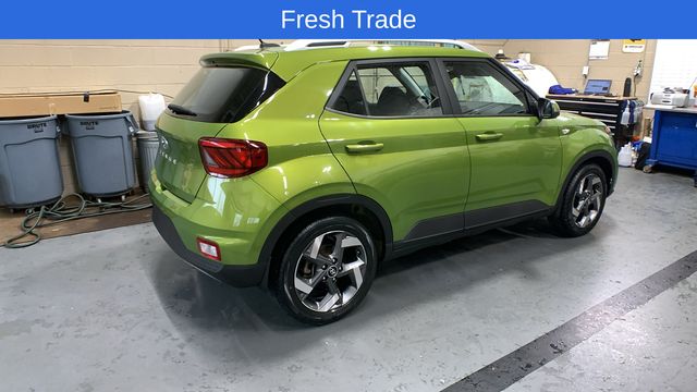 Green Apple 2023 Hyundai Venue SEL FWD CVT I4 4-Wheel Disc Brakes, 6 Speakers, 6.052 Axle Ratio, 6.5J x 17" Alloy Wheels, ABS brakes, Air Conditioning, Alloy wheels, AM/FM radio, Apple CarPlay & Android Auto, Auto High-beam Headlights, Automatic temperature control, Brake assist, Bumpers: body-color, Cargo Net, Cargo Tray, Carpeted Floor Mats, Cloth Seat Trim, Delay-off headlights, Driver door bin, Driver vanity mirror, Dual front impact airbags, Dual front side impact airbags, Electronic Stability Control, Front anti-roll bar, Front Bucket Seats, Front Center Armrest, Front reading lights, Front wheel independent suspension, Fully automatic headlights, Illuminated entry, Leather Shift Knob, Leather steering wheel, Low tire pressure warning, Mudguards, Occupant sensing airbag, Option Group 01, Outside temperature display, Overhead airbag, Overhead console, Panic alarm, Passenger door bin, Passenger vanity mirror, Power door mirrors, Power moonroof, Power steering, Power windows, Radio: AM/FM/HD Display Audio, Rear Seat Cup Holder, Rear window defroster, Rear window wiper, Remote keyless entry, Roof rack: rails only, Security system, Speed control, Speed-sensing steering, Split folding rear seat, Spoiler, Steering wheel mounted audio controls, Tachometer, Telescoping steering wheel, Tilt steering wheel, Traction control, Trip computer, Variably intermittent wipers.