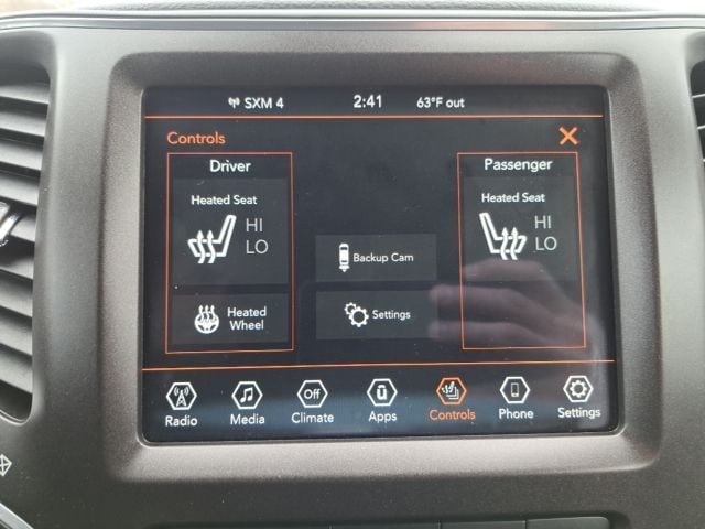 Well Equipped with: Comfort/Convenience Group (Auto-Dimming Rear-View Mirror, Hands-Free Power Liftgate, Security Alarm, and Universal Garage Door Opener), Quick Order Package 27E, 3.517 Final Drive Ratio, 4-Wheel Disc Brakes, 4G LTE Wi-Fi Hot Spot, 6 Speakers, 8.4" Touchscreen Display, ABS brakes, Air Conditioning, Alloy wheels, AM/FM radio: SiriusXM, Anti-whiplash front head restraints, Apple CarPlay, Apple CarPlay/Android Auto, Automatic temperature control, Brake assist, Cloth/Premium Vinyl Bucket Seats, Compass, Delay-off headlights, Driver door bin, Driver vanity mirror, Dual front impact airbags, Dual front side impact airbags, Electronic Stability Control, For Details, Visit DriveUconnect.com, For More Info, Call 800-643-2112, Four wheel independent suspension, Front anti-roll bar, Front Bucket Seats, Front Center Armrest, Front dual zone A/C, Front fog lights, Front License Plate Bracket, Front reading lights, Fully automatic headlights, Google Android Auto, GPS Antenna Input, Heated door mirrors, Heated front seats, Heated steering wheel, Illuminated entry, K-Black Door Trim Panel Appliques, K-Black Interior Accents, Knee airbag, Leather Shift Knob, Low tire pressure warning, Occupant sensing airbag, Off Road Suspension, Outside temperature display, Overhead airbag, Overhead console, Panic alarm, ParkView Rear Back-Up Camera, Passenger door bin, Passenger vanity mirror, Power door mirrors, Power driver seat, Power steering, Power windows, Radio data system, Radio: Uconnect 4 w/8.4" Display, Rain sensing wipers, Rear anti-roll bar, Rear reading lights, Rear seat center armrest, Rear side impact airbag, Rear window defroster, Rear window wiper, Remote keyless entry, Roof rack: rails only, SiriusXM Radio Service, SiriusXM Satellite Radio, Speed control, Speed-sensing steering, Split folding rear seat, Spoiler, Steering wheel mounted audio controls, Tachometer, Telescoping steering wheel, Tilt steering wheel, Traction control, Trip computer, Turn signal indicator mirrors, USB Host Flip, Variably intermittent wipers, Voltmeter, and Wheels: 17" x 7.5" Painted Diamond Cut AluminuM.