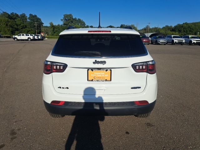 Well Equipped with: Quick Order Package 29J Latitude, FCA US LLC Certified Pre-Owned Certified, 4WD, 17" x 7" Aluminum Wheels, 3.73 Final Drive Ratio, 4-Wheel Disc Brakes, 6 Speakers, ABS brakes, Air Conditioning, Alloy wheels, AM/FM radio: SiriusXM, Auto High-beam Headlights, Brake assist, Bumpers: body-color, Compass, Delay-off headlights, Driver door bin, Driver vanity mirror, Dual front impact airbags, Dual front side impact airbags, Electronic Stability Control, Emergency communication system: Jeep Connect, Four wheel independent suspension, Front anti-roll bar, Front Bucket Seats, Front Center Armrest w/Storage, Front fog lights, Front License Plate Bracket, Front reading lights, Fully automatic headlights, Heated door mirrors, Illuminated entry, Knee airbag, Leather Shift Knob, Leather steering wheel, Low tire pressure warning, Occupant sensing airbag, Outside temperature display, Overhead airbag, Overhead console, Panic alarm, ParkView Rear Back-Up Camera, Passenger door bin, Passenger vanity mirror, Power door mirrors, Power steering, Power windows, Premium Cloth/Vinyl Bucket Seats, Radio: Uconnect 5 w/10.1" Display, Rear anti-roll bar, Rear seat center armrest, Rear window defroster, Rear window wiper, Remote keyless entry, Security system, Speed control, Split folding rear seat, Spoiler, Steering wheel mounted audio controls, Tachometer, Telescoping steering wheel, Tilt steering wheel, Traction control, Trip computer, and Variably intermittent wipers.