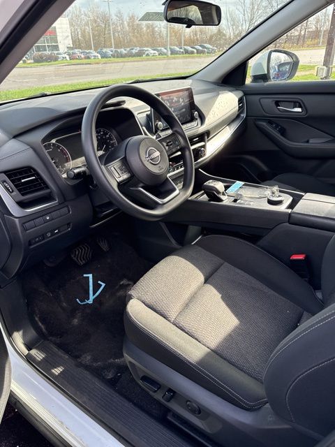 Everest White Pearl/Super Black 2024 Nissan Rogue SV AWD CVT with Xtronic 1.5L DOHC AWD, 4-Wheel Disc Brakes, 5.676 Axle Ratio, 6 Speakers, ABS brakes, Air Conditioning, Alloy wheels, AM/FM radio: SiriusXM, Auto High-beam Headlights, Automatic temperature control, Brake assist, Bumpers: body-color, Cloth Seat Trim w/Patterned Inserts, Delay-off headlights, Driver door bin, Driver vanity mirror, Dual front impact airbags, Dual front side impact airbags, Electronic Stability Control, Emergency communication system: NissanConnect Services, First Aid Kit, Floor Mats w/1-Piece Cargo Area Protector, Four wheel independent suspension, Front anti-roll bar, Front Bucket Seats, Front Center Armrest, Front dual zone A/C, Front reading lights, Fully automatic headlights, Heated door mirrors, Illuminated entry, Knee airbag, Low tire pressure warning, NissanConnect featuring Apple CarPlay and Android Auto, Occupant sensing airbag, Outside temperature display, Overhead airbag, Overhead console, Panic alarm, Passenger door bin, Passenger vanity mirror, Power door mirrors, Power driver seat, Power Liftgate, Power steering, Power windows, Radio data system, Radio: AM/FM NissanConnect, Rear anti-roll bar, Rear Parking Sensors, Rear seat center armrest, Rear side impact airbag, Rear window defroster, Rear window wiper, Remote keyless entry, Speed control, Speed-Sensitive Wipers, Split folding rear seat, Spoiler, Steering wheel mounted audio controls, Tachometer, Telescoping steering wheel, Tilt steering wheel, Traction control, Trip computer, Variably intermittent wipers, Wheels: 18" Dark Painted Machine Finished Alloy.