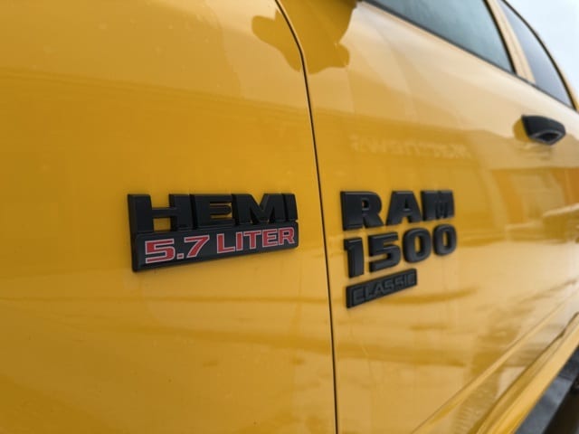 Stinger Yellow Clearcoat 2019 Ram 1500 Classic Express 4WD 8-Speed Automatic HEMI 5.7L V8 Multi Displacement VVT **NON SMOKER**, **NEW BRAKES**, **RECENT OIL CHANGE**, 17" x 7" Aluminum Wheels, 4x4 Flat Black Badge, Black Exterior Truck Badging, Black Headlamp Bezels, Black RAM Head Tailgate Badge, Black Seats, Body Color Front Fascia, Body Color Grille, Body Color Grille w/Black RAM's Head, Body Color Rear Bumper w/Step Pads, Carpet Floor Covering, Center Hub, Cloth 40/20/40 Bench Seat, Cluster 7.0" TFT Color Display, Delete Class IV Receiver Hitch, Delete Spray In Bedliner, Electronics Group, Express Black Accent Package, Express Value Package, Front Floor Mats, Front Fog Lamps, MOPAR Sport Performance Hood Decal, Overhead Console, Quick Order Package 26J Express, Quick Order Package 27J Express, Radio: Uconnect 3 w/5" Display, Radio: Uconnect 4C w/8.4" Display, Ram 1500 Express, Rear Floor Mats, Remote Keyless Entry w/All-Secure, Semi-Gloss Black Hub, Sport Performance Hood, Stinger Yellow Sport Package (DISC), Temperature & Compass Gauge, Wheels: 20" x 8" Aluminum Chrome Clad, Wheels: 20" x 8" Semi-Gloss Black Aluminum.
